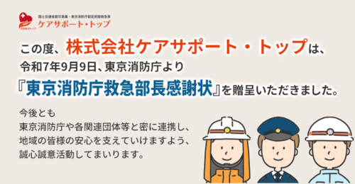 令和7年9月9日、東京消防庁より『東京消防庁救急部長感謝状』を贈呈いただきました。