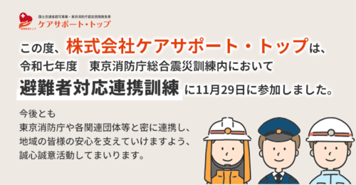 令和七年度 東京消防庁総合震災訓練内において避難者対応連携訓練に11月29日に参加しました。